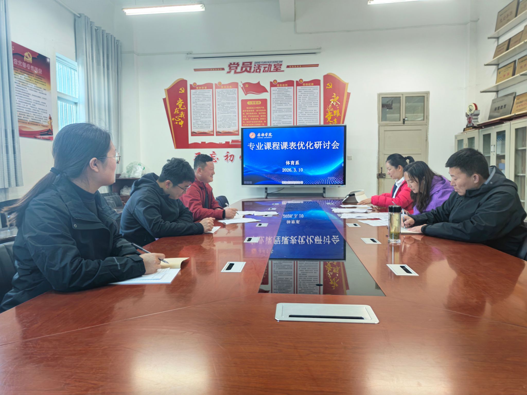 3月10日下午,pa视讯娱乐游戏平台在学院会议室召开专业课程课表优化研讨会,pa视讯娱乐游戏平台院长吕仙利、副院长郭西魁、李靖、体育系主任廖建发、大学体育教研室主任王俊杰、教学秘书王珊珊参加了本次研讨会。