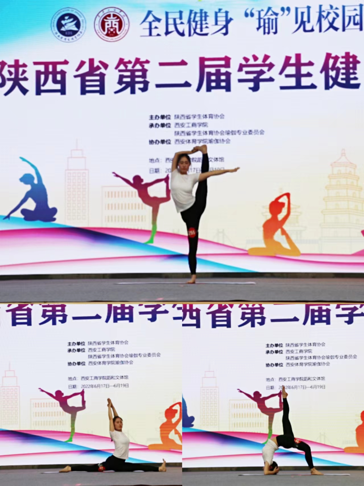 由陕西省学生体育协会主办,陕西省学生体育协会瑜伽专业委员会、西安工商学院承办,陕西省健身瑜伽协会协办的“2022年陕西省第二届学生健身瑜伽比赛”于2022年6月17日至19日在西安工商学院蹈和文体馆举行。