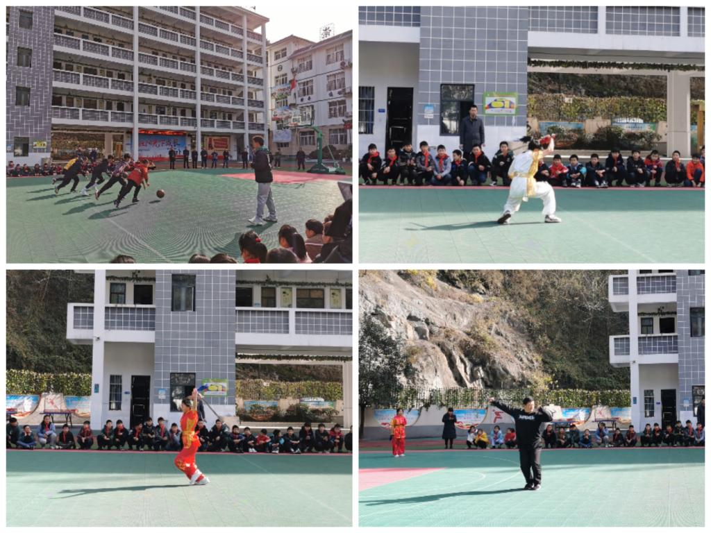 在麻虎镇中心小学,汪义瑞、高立平向麻虎镇中心小学赠送了篮球、排球、足球、乒乓球、羽毛球等体育器材,汪义瑞、高立平、付争方、陈国杰还亲切看望了该校留守儿童,向他们赠送了书包、笔记本、铅笔盒等文具。随后,pa视讯娱乐游戏平台青年教师廖建发带领pa视讯集团武术队队员侯艾君、王正婷为大家带来了精彩的八极拳、剑术、刀术表演,赢得麻虎镇中心小学师生的阵阵掌声;接着,pa视讯娱乐游戏平台学生兰伟为麻虎镇中心小学体育社团上了一堂篮球公开课,在孩子们的心中埋下篮球的种子;最后,送教下乡人员一行又来到麻虎镇初级中学,向学校赠送了体育器材,了解了他们在体育课、社团建设方面的情况和困难。