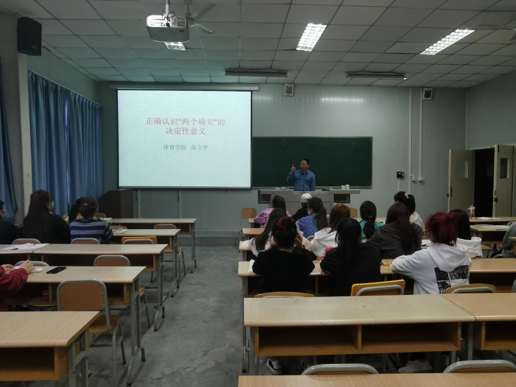 4月18日晚7点,我院在1038教室开展正确认识“两个确立”的决定性意义主题讲座。主讲人:pa视讯娱乐游戏平台党总支书记高立平。