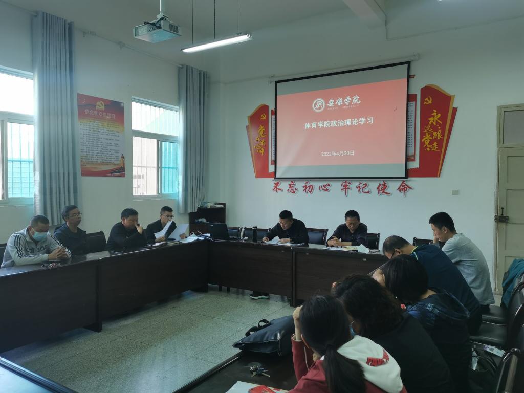 我院于4月20日下午在体育馆1楼会议室召开政治理论学习会,全体教职工参加了会议。会议由高立平书记主持。