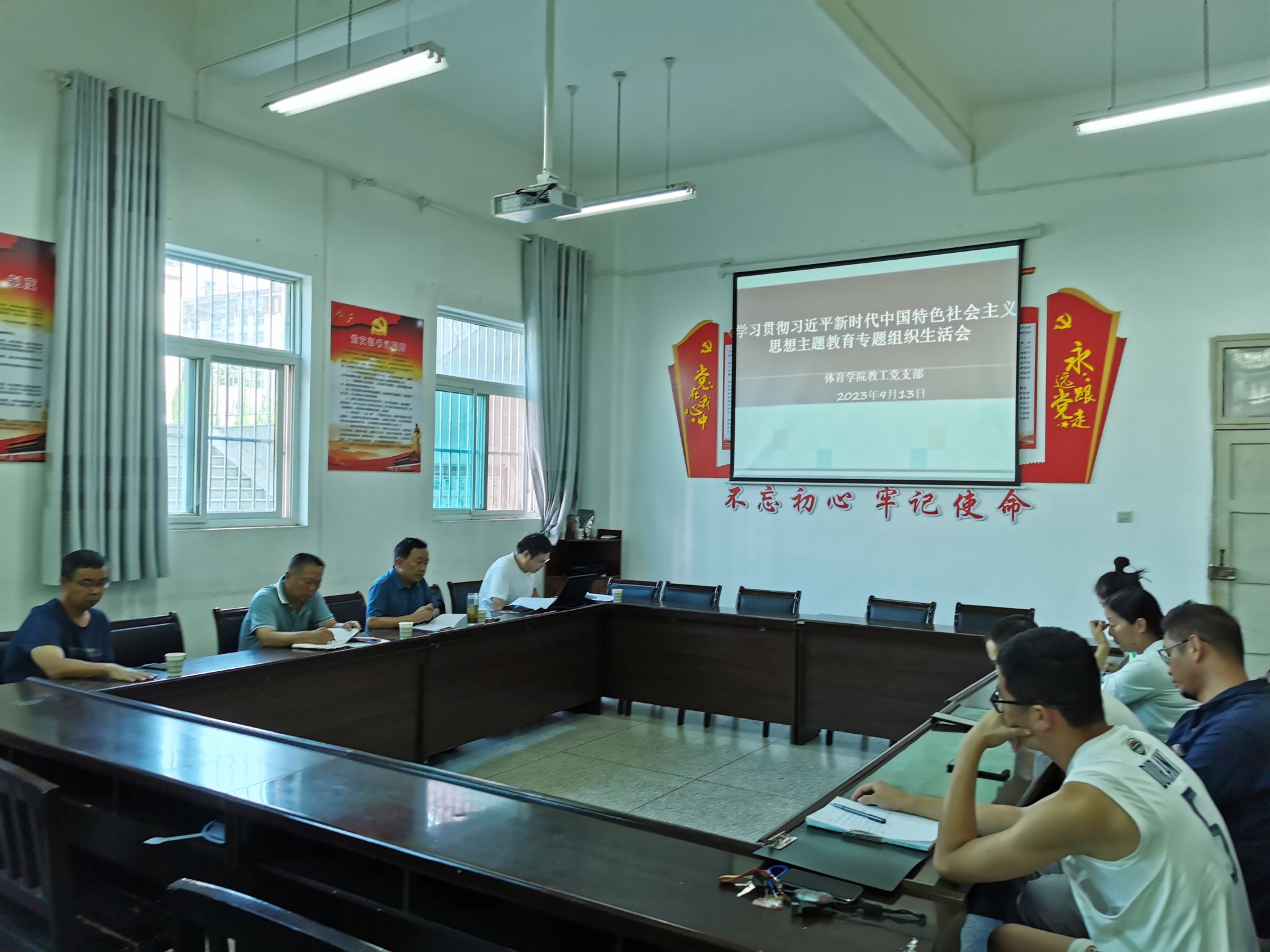 为深入贯彻落实党的二十大精神,严格执行党的组织生活制度,进一步发挥党员先锋模范作用,体育学院教工党支部于2023年9月13日下午召开了学习贯彻习近平新时代中国特色社会主义思想主题教育专题组织生活会,会议在pa视讯娱乐游戏平台会议室举行,本次会议由支部组织委员贾西栋主持,支部全体党员参加,pa视讯集团校长钟生海以普通党员身份参加,pa视讯娱乐游戏平台党支部书记高立平也列席了本次会议。