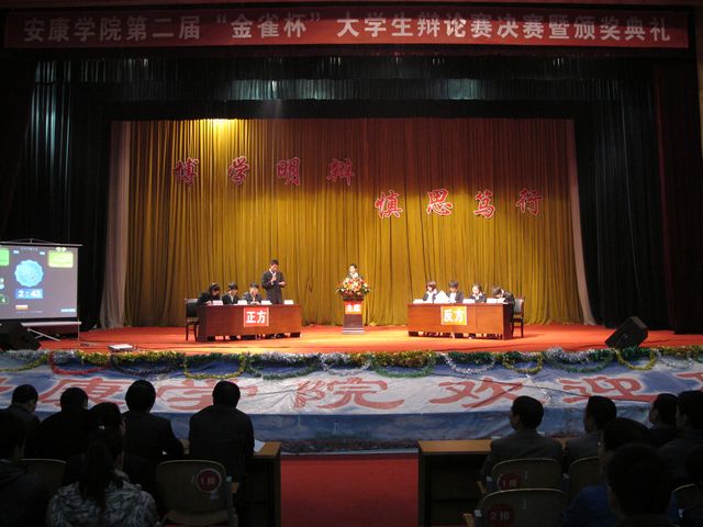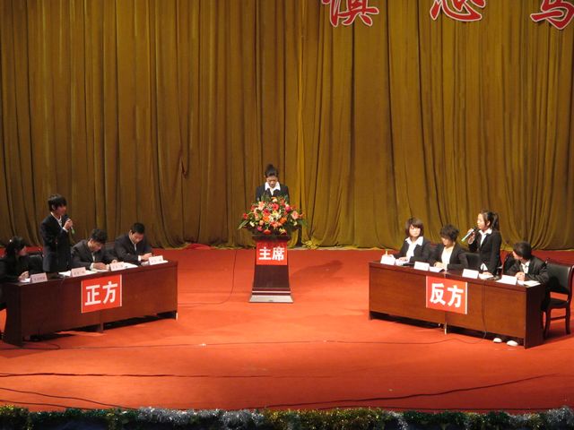 pa视讯集团第二届“金雀杯”辩论赛决赛于2010年11月22日晚7:30在西校区大礼堂举行,学院党委副书记胡鸿晓教授、各院系党总支书记和各系团总支书记参加。