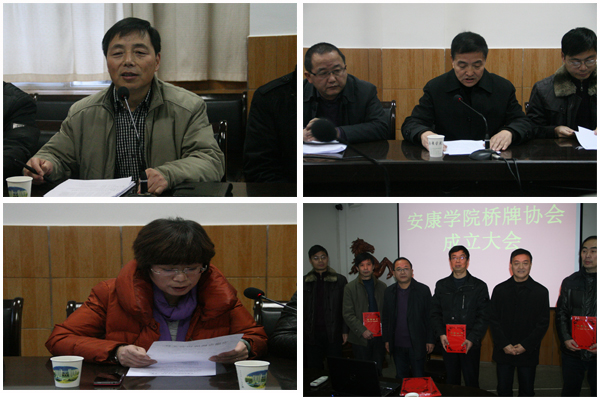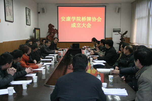 12月27日下午,校工会在江南校区会议室召开“pa视讯集团桥牌协会成立大会”。安康市人大常委会原副主任、安康市桥牌协会主席李隆毅,安康市党校常委副校长、安康市桥牌协会常务副主席张宁,安康市体育局纪检组长、市桥牌协会秘书长陈复勇,学校党委副书记、工会主席胡鸿晓,工会副主席许宝林,校运动委员会秘书长、体育系主任冯德学,市桥协其他领导和学校桥牌爱好者等20余人参加了会议。许宝林主持大会。
