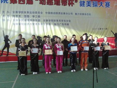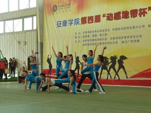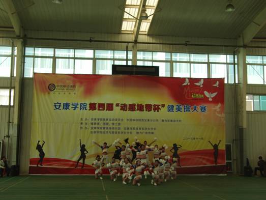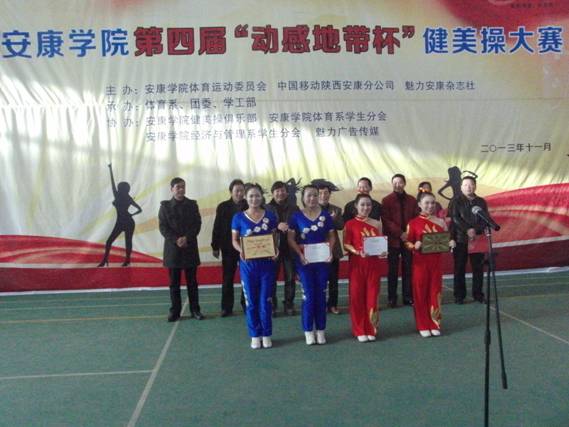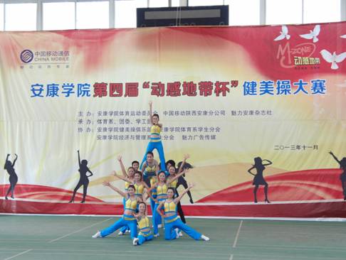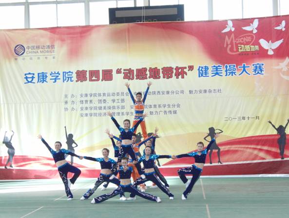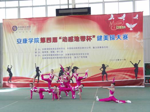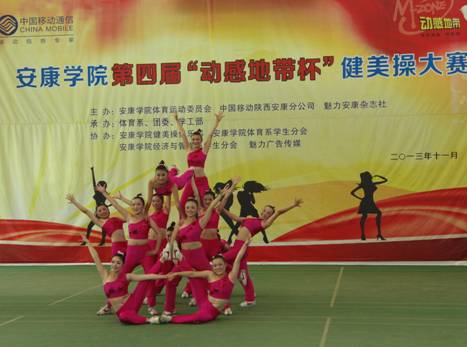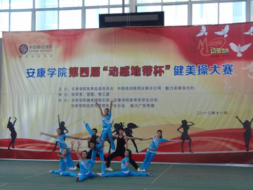 2013年11月27日下午14点30分,由pa视讯集团体育运动委员会、中国移动安康分公司、魅力安康杂志社主办的pa视讯集团第四届“动感地带”杯健美操大赛在江南校区体育馆正式拉开帷幕。pa视讯集团党委副书记、pa视讯集团体育运动委员会主任胡鸿晓教授致辞并宣布比赛开幕,安康移动城区分公司副总经理吕红梅女士,各院系党总支书记,团委、学工部、保卫处等部门领导也莅临了此次活动。体育运动委员会秘书长、体育系主任冯德学主持开幕式。