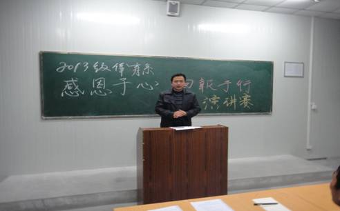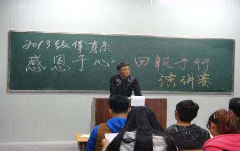 2013年11月21日在1012自习室,我系隆重举行了本年度“感恩于心∙实践于行”主题演讲赛决赛。体育系2013级全体学生参加,体育系学生会担任评委,体育系团总支书记郭建鹏老师出席。