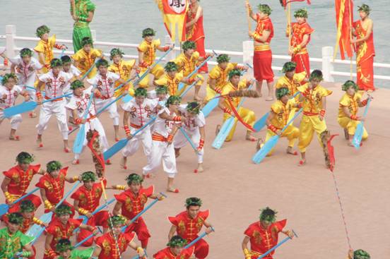 本次演出自4月初编排,动用了我系几乎所有一、二年级男生,是我系学生参加此类活动人数最多的一次,同时也是表演任务最重的一次。在距离正式演出只有13天、已经完成2个重要节目排练的情况下,我系同学应本届“龙舟赛”组委会的安排,以高度责任感又承担起在当时几乎完成不了的《龙头亮相》的表演任务。参与演出同学们及工作人员尽职尽责,以干克难,发扬不怕累、不畏难的体育精神,认真排练,他们的坚毅精神,得到了安康编导老师的肯定。值得一提的是我系13级女生在没有安排演出任务的情况下,主动为参与演出同学整理服装道具,保管私人物品,无不体现着集体主义精神。本次龙舟节的顺利演出为我系、我校赢得了荣誉!