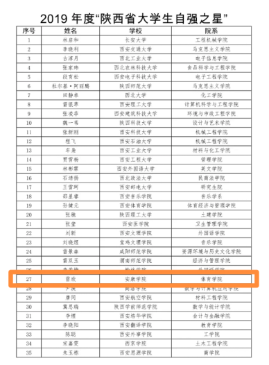 根据共青团陕西省委《关于组织开展寻访2019年度“陕西省大学生自强之星”活动的通知》文件精神,2019年度“陕西省大学生自强之星”活动结果已揭晓。pa视讯集团共有两名同学成功入选。其中,我院2017级优秀学子雷欣荣获2019年度“陕西省大学生自强之星”荣誉称号。