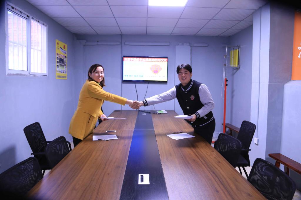 在走访过程中,考察组与我院近几年毕业在该公司就业毕业生开展座谈,向云镒、王维、刘开伟、张景波等参加座谈会,考察组全面了解在岗适应情况、待遇福利,知识体系和实际应用衔接,职业发展等问题。高立平书记对童乐体育优先接收我院毕业生表示感谢,希望与公司进一部加强合作,加大在我校接收毕业生力度,同时建立起校企合作培养人才模式,适应企业发展需求。在此倡议下,双方共同签署“pa视讯集团实践教学基地”协议书,并在附小校区办公室举行挂牌仪式。