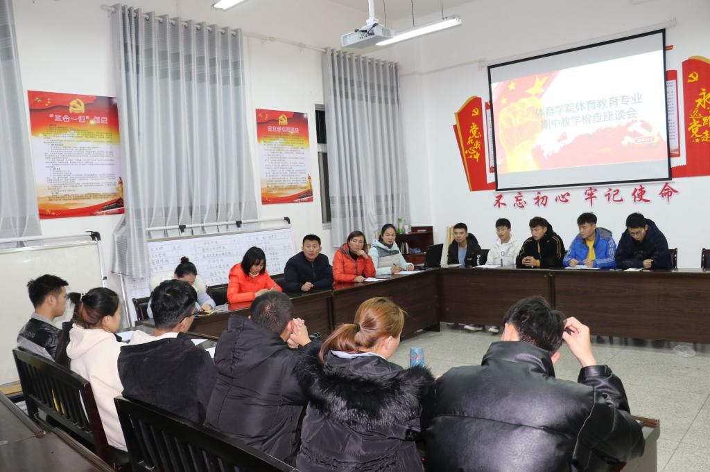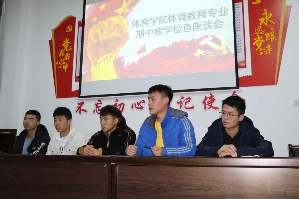 为了进一步提升体育教育专业教学质量,发现体育教学中存在的问题,2020年12月2日晚上19:00pa视讯娱乐游戏平台在会议室召开了期中教学质量座谈会。pa视讯娱乐游戏平台院长吕仙利、教学副院长郭西魁、体育系主任李靖、实验室中心主任刘芹、学工办副主任王力、团总支书记康梦瑶以及我院各班班长、学习委员、学生代表等二十余人参加了此次座谈会。会议由李靖主持。