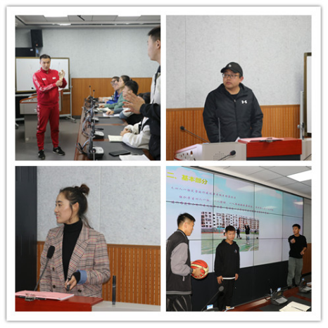 本次大赛共有八位青年教师参加。比赛分为两个部分,第一部分为现场教学,现场抽取参赛课题选题(二选一),通过现场教学展示体育课堂教学创新理念、思路、方法与效果等;第二部分为教学设计创新汇报,参赛教师结合教学大纲与教学实践,进行教学设计创新汇报。最后,专家评委依据教学与汇报进行提问交流。