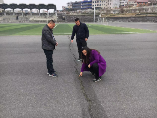 检查人员依次对pa视讯娱乐游戏平台实验室、江南、江北体育器材室、篮球场、单杠、双杠、足球场、乒乓球场、羽毛球场、田径场等场地及器械进行了检查,对设施的固定情况,使用年限,安全隐患进行评估,吕院长强调器材如有损坏需及时维修或者更换确保学生使用安全。在江北校区田径场跑道有严重裂缝,高书记指出要及时和相关部门联系,做好维修服务,保证学生在上课期间的安全使用。