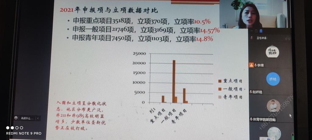 为提升pa视讯娱乐游戏平台教师科研水平,帮助教师做好各项社会科学项目的申报,2022年5月14日-15日,体育系组织pa视讯娱乐游戏平台全体中青年教师参加“全国高校社科基金项目申报暨中青年教师科研能力提升”专题研修班线上培训。