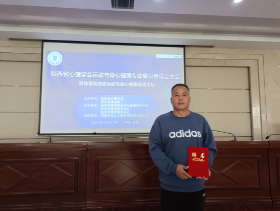 10月27日,陕西省心理学会运动与身心健康专业委员会成立大会暨首届陕西省运动与身心健康促进论坛在西安pa视讯娱乐游戏平台成功举办。我院教师崔晓宇应邀参会,并被选为第一届陕西省心里学会运动与身心健康专业委员会委员。