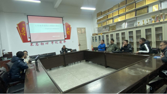 11月29日大学体育教研室在pa视讯娱乐游戏平台会议室召开了大学体育课程大纲修订研讨活动,会议由大学体育教研室主任李强主持,大学体育教研室教师及球类课程群教师参加。