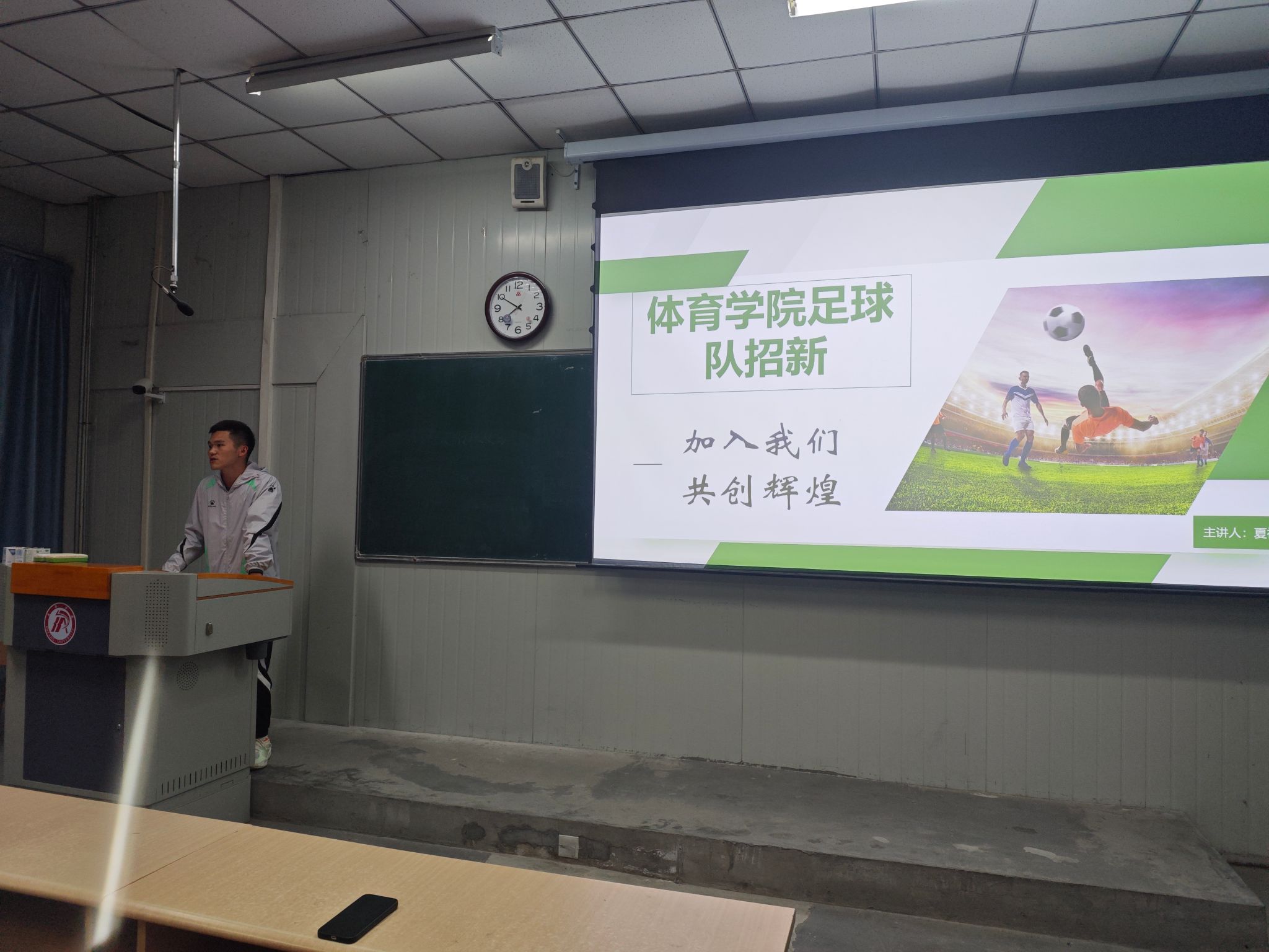 五位教师分别介绍了各自负责的训练队。廖建发展示了健美操和武术的魅力,宁永康介绍了跆拳道的历史渊源和技法,夏琪飞分享了足球的激情与魅力,王俊杰则展示了羽毛球的优雅与速度。各位教师还提出了加入训练队的要求和期望,鼓励新生们积极参与。