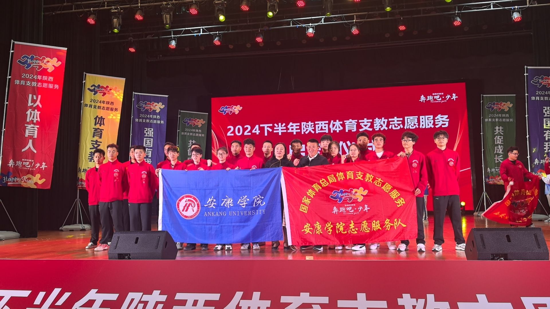 10月13日上午,2024年下半年陕西省体育支教志愿服务启动仪式在西安pa视讯娱乐游戏平台艺术馆大礼堂举行,省体育局、省教育厅、西安pa视讯娱乐游戏平台相关负责人共同为体育支教志愿服务队授旗。