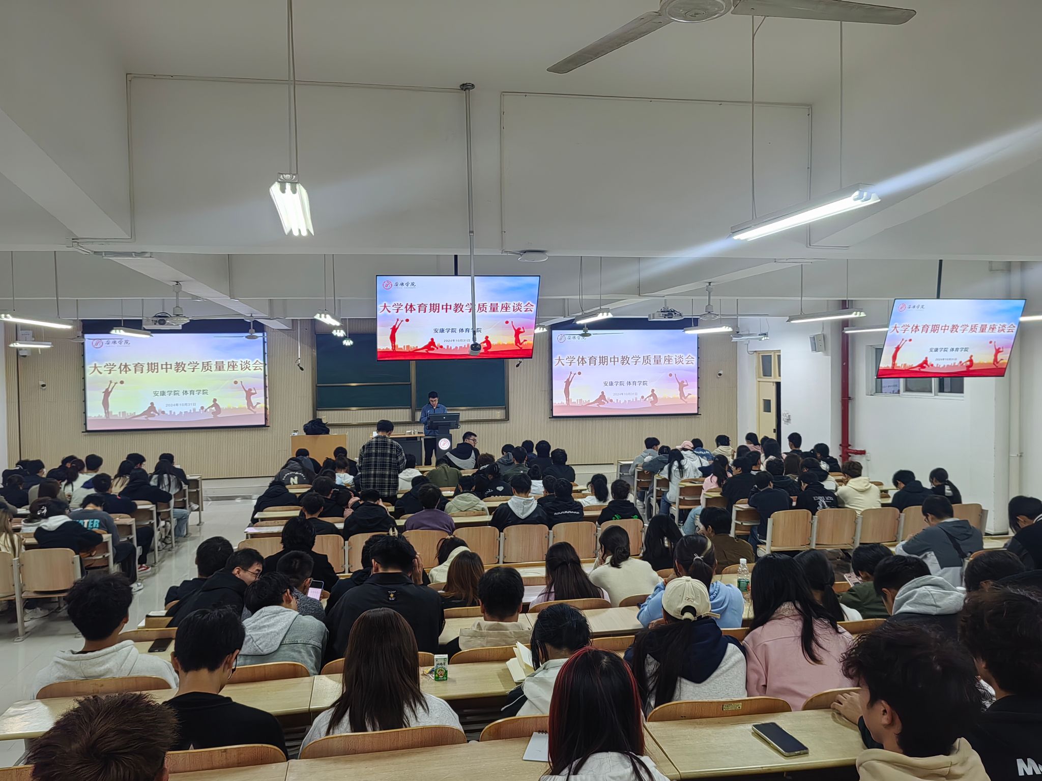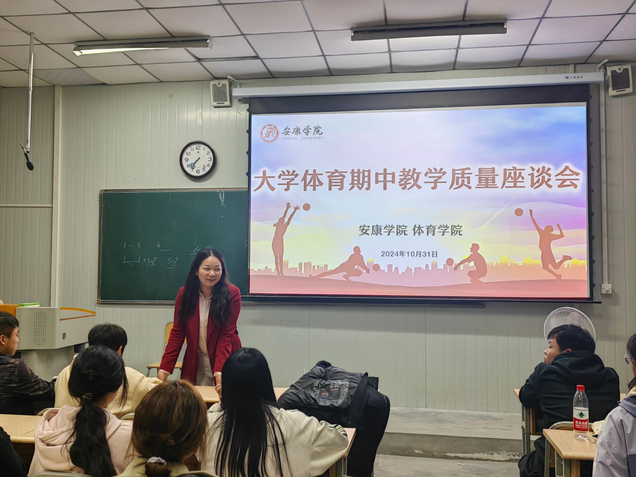 为进一步提高大学体育教学质量,全面掌握全校大学体育工作运行情况,帮助改进教学方法、提升学生学习效率,有序推进大学体育工作。2024年10月31日和11月1日,pa视讯娱乐游戏平台分别在江南、江北校区召开2024-2025学年第1学期大学体育期中教学质量座谈会,pa视讯娱乐游戏平台副院长李靖、pa视讯娱乐游戏平台教学办主任赵娇艳、大学体育教研室副主任王俊杰及各二级学院学生会体育部干部、2023级、2024级各班班长、体育委员等学生代表参加座谈会。会议由大学体育教研室副主任王俊杰主持。