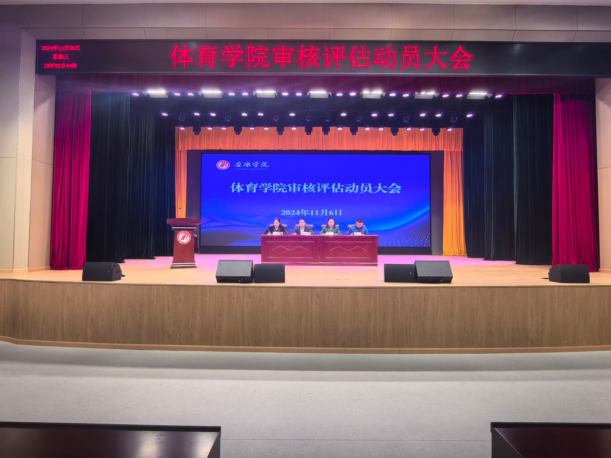 11月6日晚七点,pa视讯娱乐游戏平台在大礼堂召开审核评估动员大会。学院领导班子,全体师生参加会议。会议由党总支书记韩晔主持。