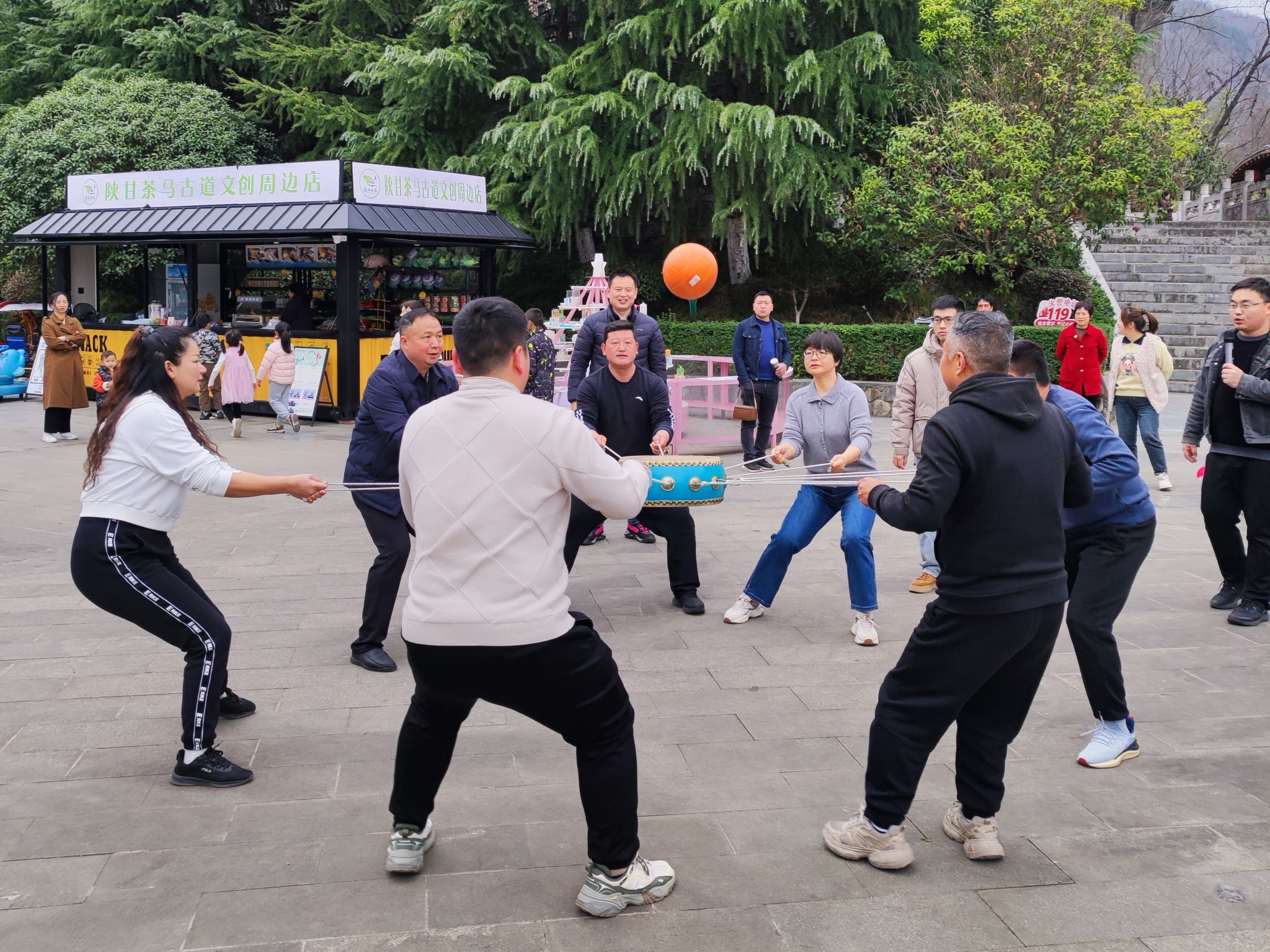 参观活动结束后,我院教职工与化环学院教职工联合开展了同心鼓游戏比赛,将整个联谊活动推向了高潮。教职工们积极参与,分组协作,在游戏中增进了彼此之间的感情,展现出了团结协作的精神风貌。
