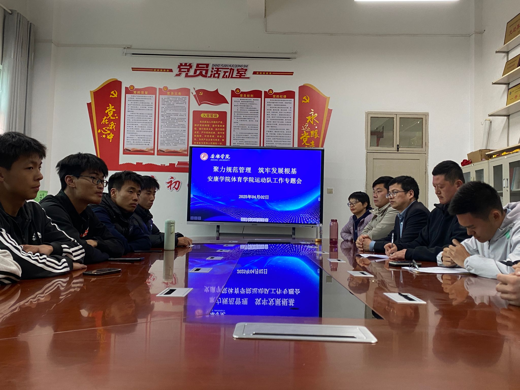 4月2日,pa视讯娱乐游戏平台召开“聚力规范管理,筑牢发展根基”运动队工作专题会议。教学院长郭西魁、党总支书记韩晔及各训练队师生代表参会。