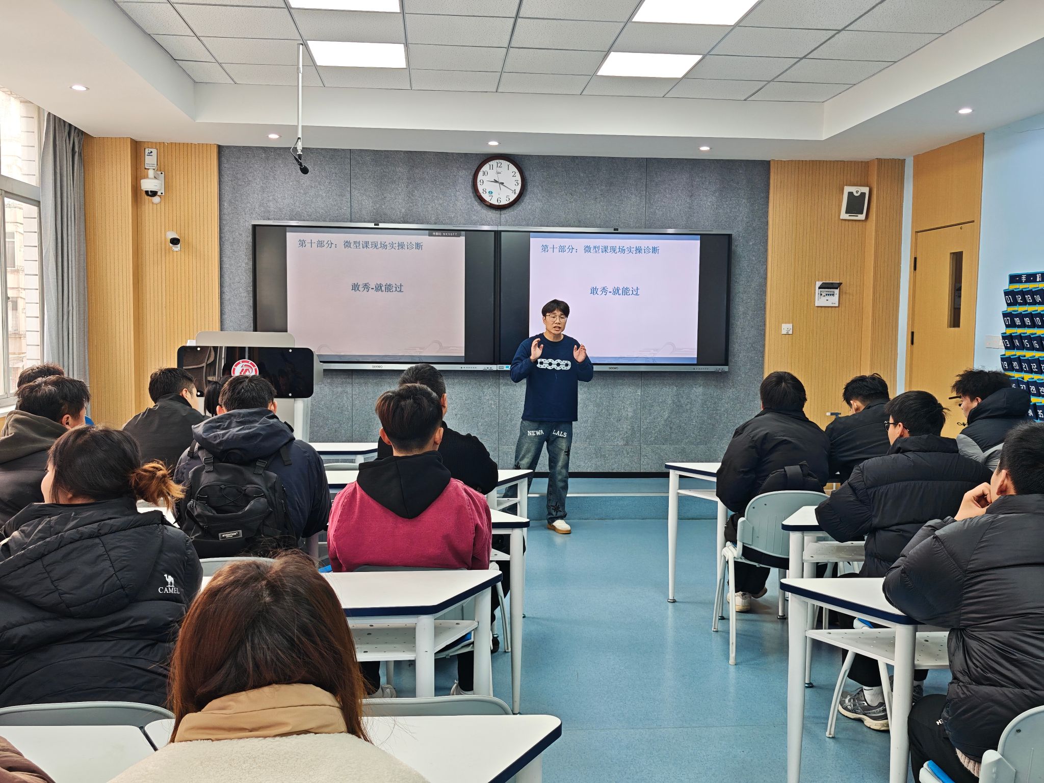 活动的最后是“实战演练”环节。在场学生踊跃上台,进行模拟授课演示。三位导师现场担任评委,仔细观察每一位同学的表现,并从教案设计、语言表达、教姿教态到课堂组织等方面,给予了针对性极强的一对一指导。这种沉浸式的互动体验,使学生在真实的教学情境中检验了学习成果,明确了未来的改进与提升方向。