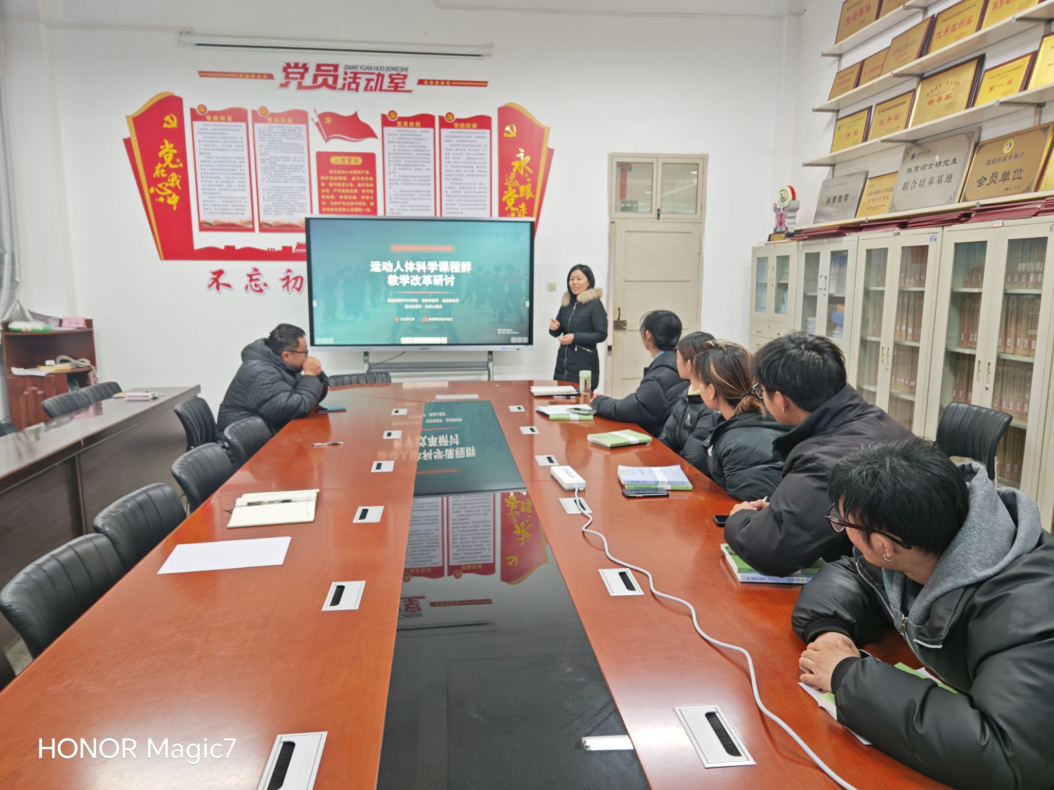 本次活动紧扣教学融合提质核心目标,聚焦运动人体科学领域课程教学痛点与科研发展方向,设置专题分享、案例研讨、互动交流三个环节。活动伊始,课程群负责人结合当前高等体育教育改革趋势,解读了课程群建设的重要意义,强调要打破单门课程孤岛效应,通过知识点整合、教学方法协同、实践资源共享,构建理论贯通、实践联动的课程体系。