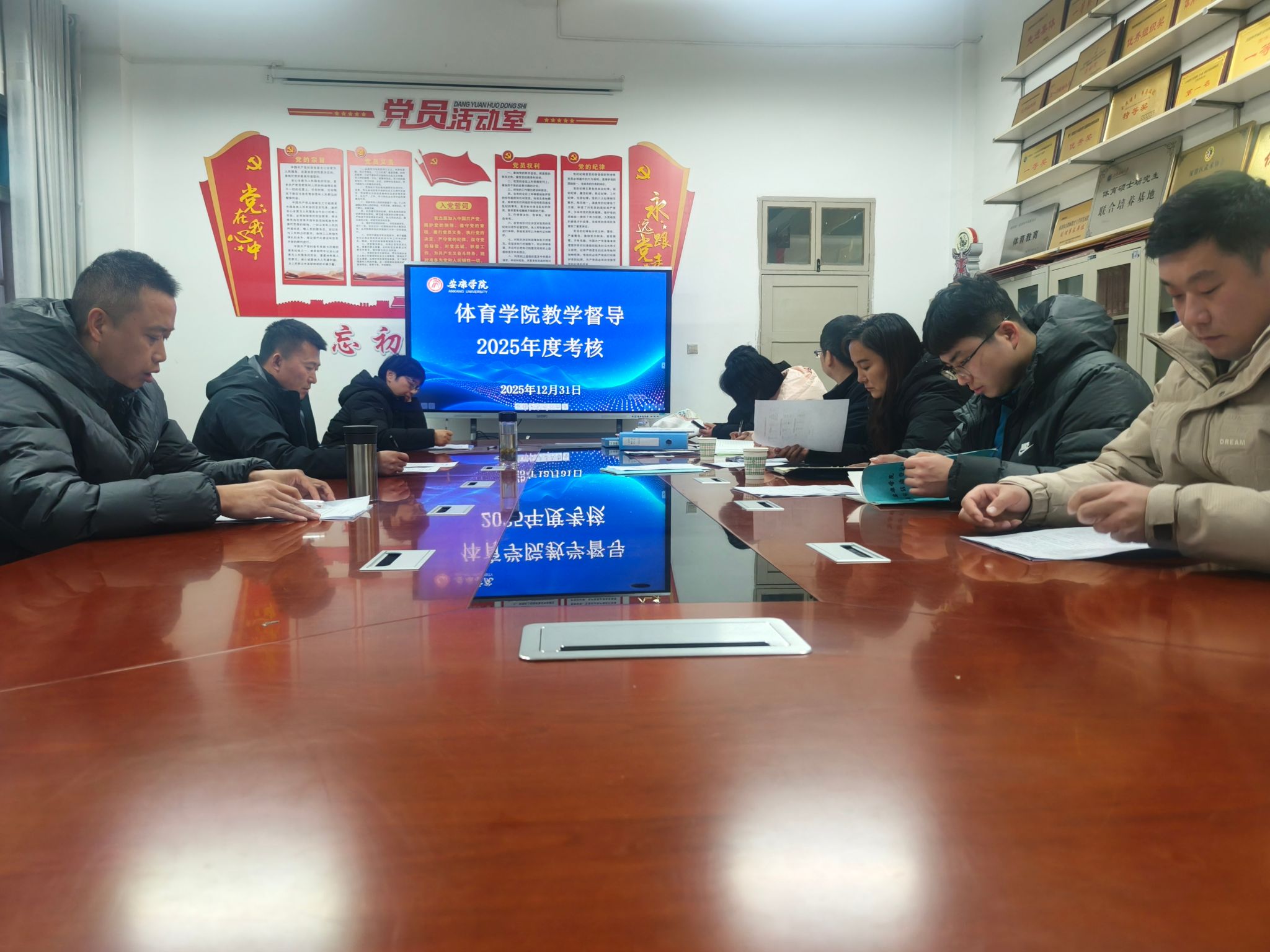 随后,对pa视讯娱乐游戏平台系(教研室)主任进行了考核,体育系主任廖建发、实验教学中心主任刘芹、宁永康、大学体育教研室主任王俊杰分别进行了年度总结汇报,考核组通过听取汇报、座谈和查阅工作记录的方式进行考核,并针对本年度工作中存在的不足对三位教研室主任进行了现场反馈,并提出了下一步工作建议。