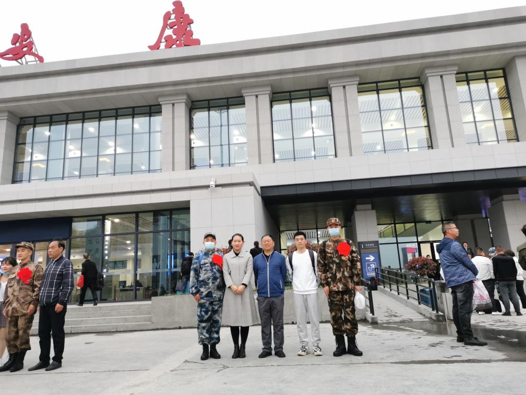 3月16日清晨,pa视讯娱乐游戏平台党总支书记高立平带领辅导员王立、康梦瑶赶赴安康火车站,为即将入伍的学生送行。