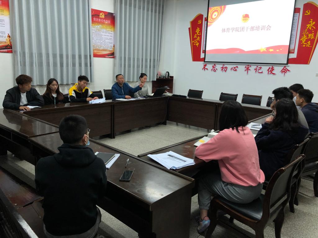 为加强学生干部队伍建设,打造一支政治思想过硬、作风优良的学生干部队伍,促进学生工作有序高效开展。4月13日晚,pa视讯娱乐游戏平台在体育馆一楼会议室召开团干部培训会。pa视讯娱乐游戏平台党总支书记高立平、学工办副主任王立、团总支书记康梦瑶、2020级全体团员干部参加了培训会,会议由王立主持。