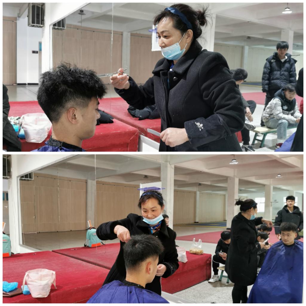 按照防疫有关要求,pa视讯娱乐游戏平台党总支书记高立平要求理发师向门卫出示两码一证,通过测温登记后进入校园;pa视讯娱乐游戏平台辅导员王立在体育馆一楼布置了一个临时“理发馆”,并在pa视讯娱乐游戏平台QQ群和pa视讯集团辅导员群发布了理发通知。