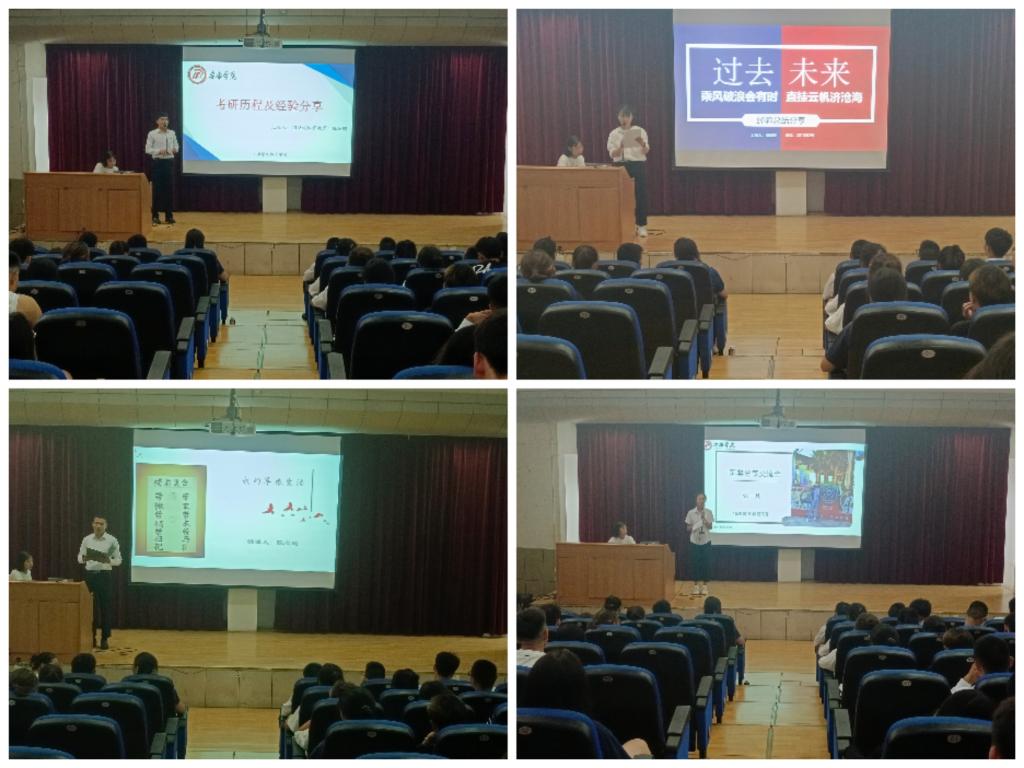 张彩霞从学习、考证、人际关系等方面讲述了大学四年的学习经验和体会,勉励同学们合理利用时间、注重学习方法,让自己变得更加优秀;薛鹏以自己的切身经历向同学们详细的介绍了考研各个环节的备考经验,同时也分享了备考四六级的方法;张一凡讲述了做好大学生职业生涯规划、明确目标的重要意义,鼓励大家要从实践中不断学习,实现人生价值;陈志刚从部队日常训练,生活和感悟等方面分享了艰苦而意义非凡的军旅生活,他说到参军报国既是磨砺人生,实现理想抱负的重要途径,更是热爱祖国的高尚行为,并鼓励同学们积极响应国家号召加入军营。