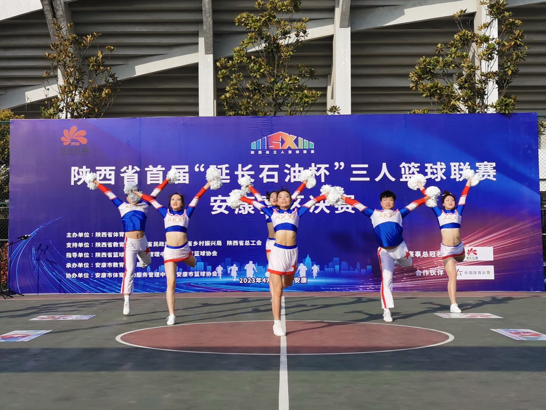 4月1日上午,陕西省首届“延长石油杯”三人篮球联赛安康赛区决赛在安康金州广场举行,我院啦啦操队应邀参加开幕式表演。