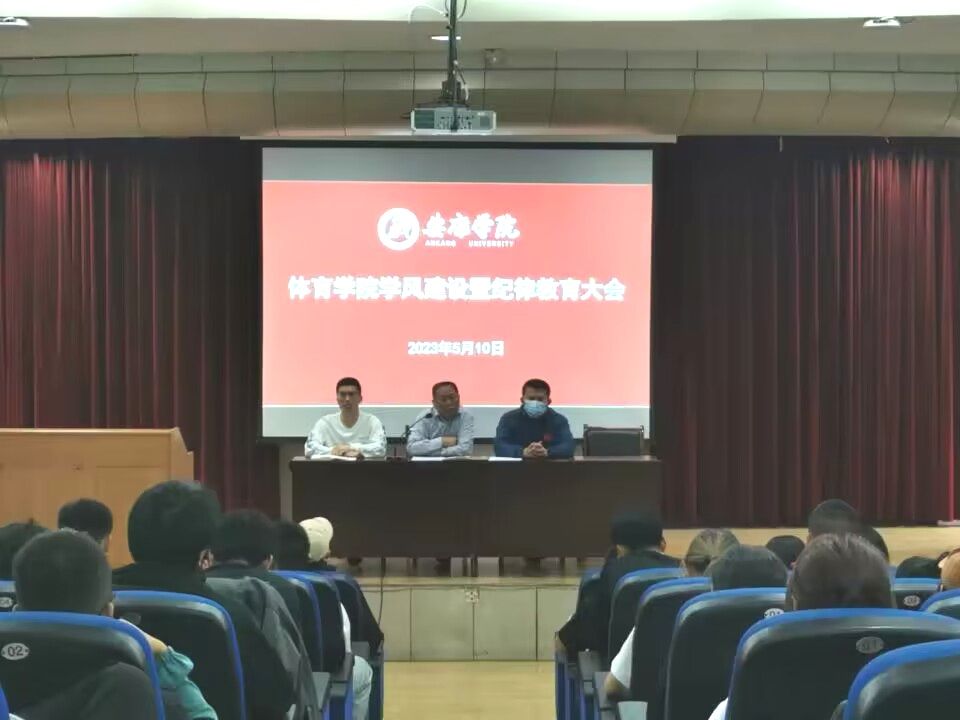 5月10日下午,我院在1号教学楼6楼报告厅召开学风建设暨纪律教育大会。学院党总支书记高立平、副院长郭西魁、学工办副主任王立、团总支书记康梦瑶以及2021级、2022级全体学生参加了会议,会议由王立主持。