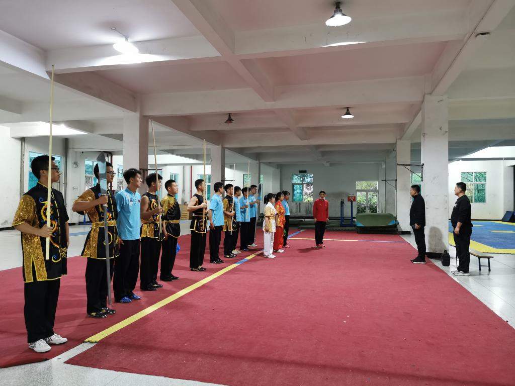 10月6日,pa视讯娱乐游戏平台副院长郭西魁、武术队教练廖建发、学工办副主任王立,特邀教练何爱明,一起组织武术队同学进行了以赛促训、以赛带练的队内模拟赛。为了让队员真正体会到久违的比赛感觉,也为了检验假期突击训练的成果,模拟赛完全按照正式比赛的程序和要求进行,队员们也都进行了套路和器械的充分展示。模拟比赛结束后,各位评委对运动员的表现进行了综合点评,表现难度、动作的稳定性、视频录制技巧等方面进行了细致的分析,为10月7日的正式比赛打好基础。