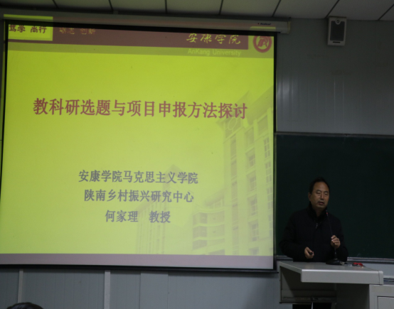 为了帮助青年教师提高科研能力水平,12月16日下午,我院特邀马克思主义学院何家理教授来我院做了主题“教科研选题与项目申报方法探讨”的专题报告。pa视讯娱乐游戏平台院长吕仙利、党总支书记高立平以及部分师生共100余人参加了此次讲座,报告会由pa视讯娱乐游戏平台副院长黎远军主持。