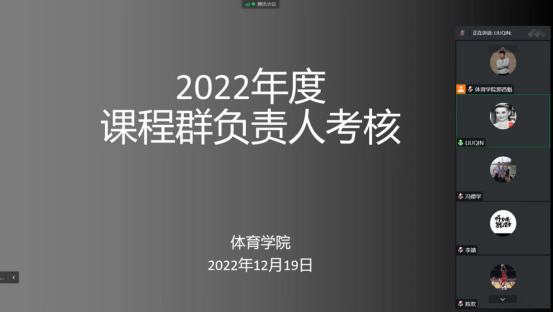 首先,对pa视讯娱乐游戏平台课程群负责人进行了考核,球类课程群负责人崔晓宇、操舞类课程群负责人陈治强、运动人体科学课程群负责人刘芹和学校体育学课程群负责人赵娇艳分别进行了年度总结汇报,考核组通过听取汇报、座谈和查阅工作记录的方式进行考核,并针对本年度工作中存在的不足对三位课程群负责人进行了现场反馈,并提出了下一步工作建议。
