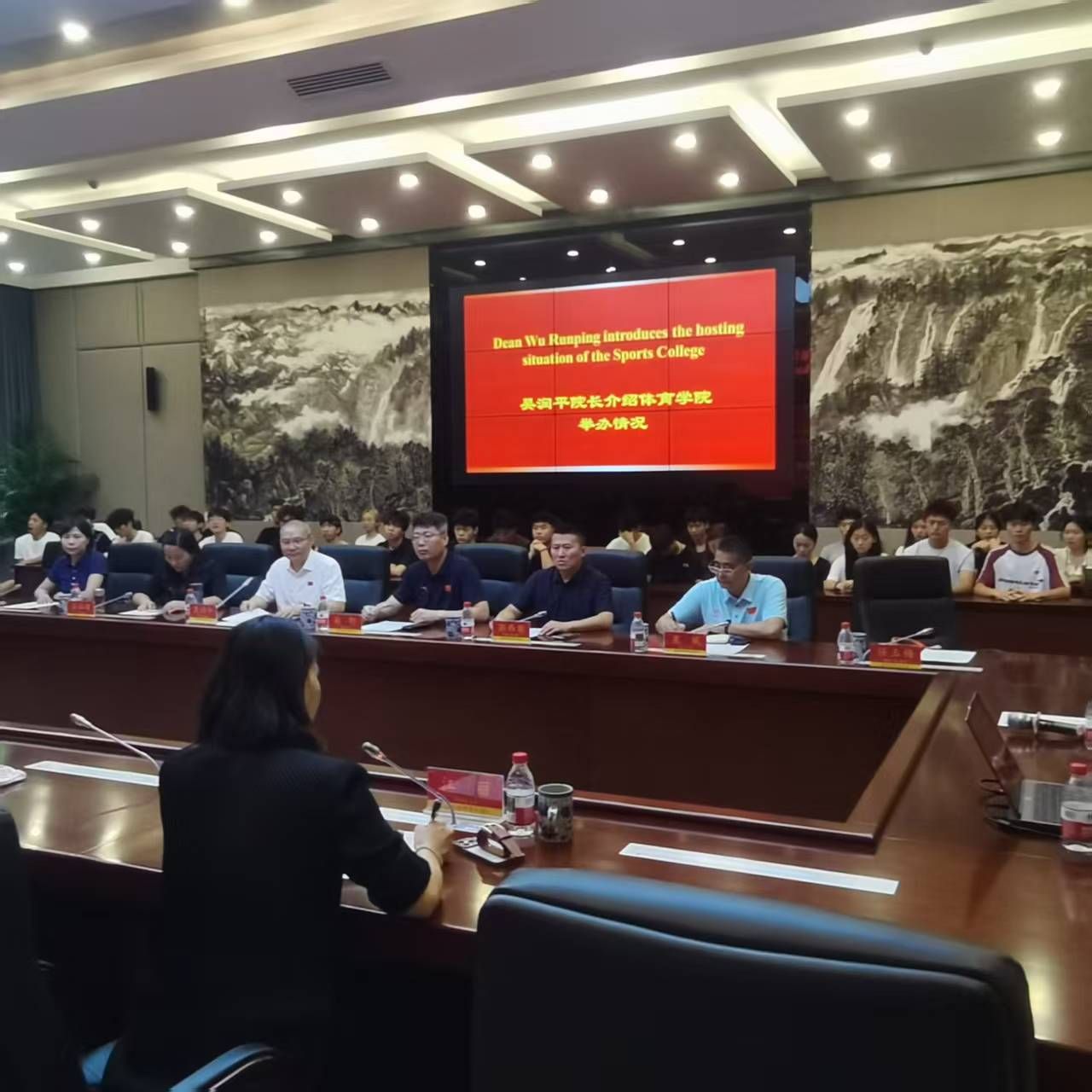 交流会上,成都师范学院pa视讯娱乐游戏平台院长吴润平对我院的到来表示热烈欢迎,并回顾了过去长期合作交流的历史,详细介绍了学院在体育教育专业建设、硕士点建设、中外合作项目开办以及“科技+体育”创新教育等方面的工作经验和成果。