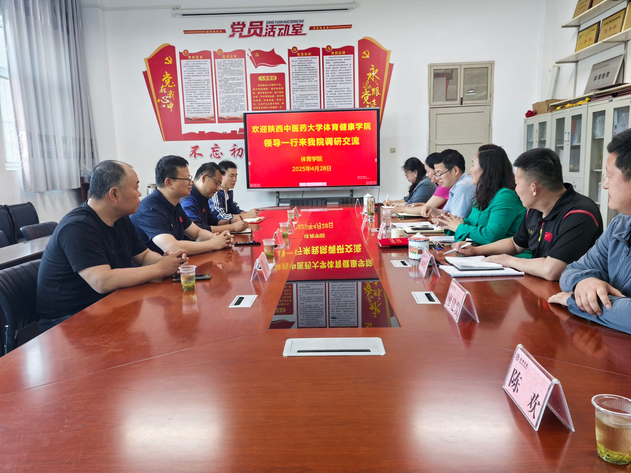 为加强校际合作,4月28日,陕西中医药大学体育健康学院院长杜国辉一行4人来我院调研交流。我院领导班子及相关专业负责人及教师代表热情接待并座谈。双方围绕学科建设、人才培养、实践教学等内容展开深入探讨,共谋高质量发展路径。