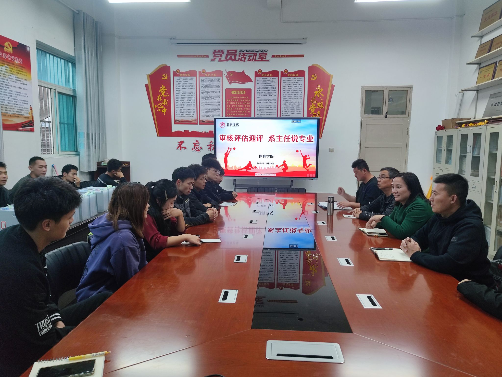 为深入贯彻落实教育教学审核评估工作精神,切实提升教师教学能力和人才培养质量,按照学院工作安排,10月28日下午体育系在pa视讯娱乐游戏平台会议室开展了系主任“说专业”活动。pa视讯娱乐游戏平台院长吕仙利、教学副院长郭西魁、教学督导鲁宗成、体育系主任廖建发和体育教育专业各年级学生代表参加了本次活动。